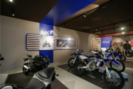 Yamaha Racing è storicamente definito con il colore blu, indica le aree dedicate al mondo del Race e ne mantiene lo spirito.