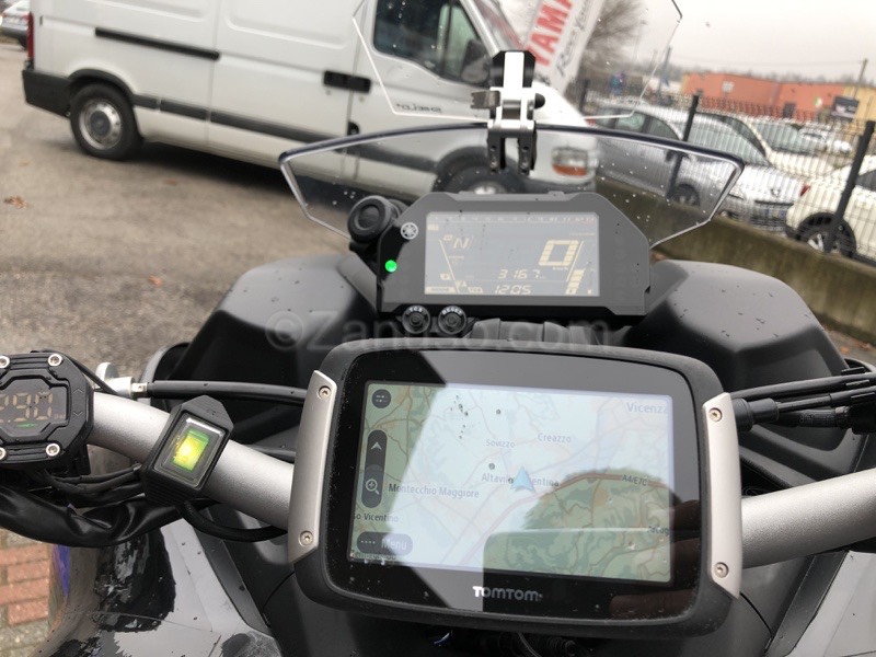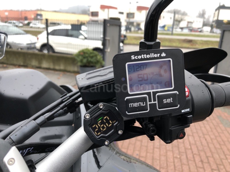Oltre a vari equipaggiamenti come l’ingrassatore catena automatico, i sensori di pressione attivi con display per i tre pneumatici e i fari supplementari di profondità, sono stati spostati gli specchi al manubrio per offrire una maggiore visibilità rispetto alla posizione degli originali.