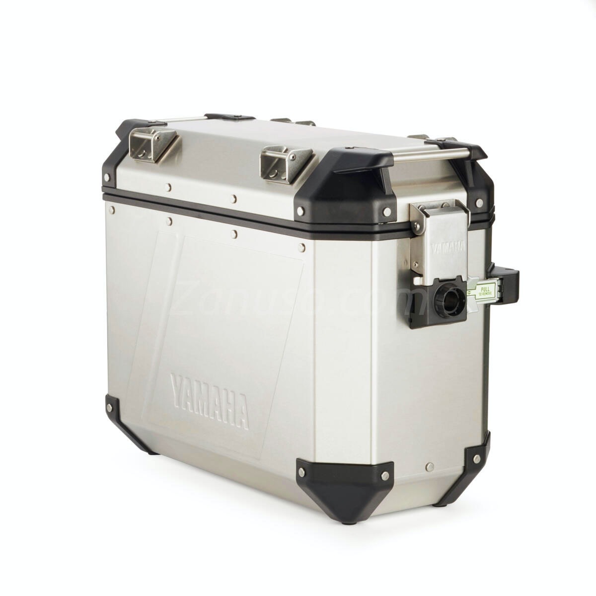 Borsa laterale destra in alluminio con capacità di carico di 37 L.
