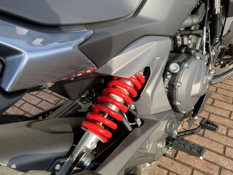 La sicurezza ed il controllo sono di serie: ABS Bosch, impiato frenante J.JUAN con pinze radiali su dischi a margherita, sospensioni completamente regolabili KYB.